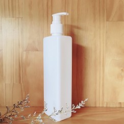 - Chai đựng mỹ phẩm bằng nhựa trắng, nắp có vòi nhấn nhỏ giọt.