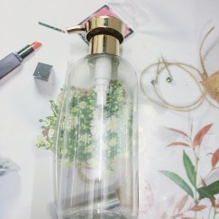 - Chai đựng mỹ phẩm bằng nhựa trong, nắp có vòi nhấn nhỏ giọt.