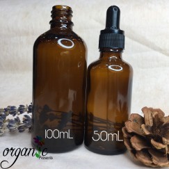 - Chai đựng mỹ phẩm bằng thủy tinh màu nâu, nắp bóp kèm ống thủy tinh nhỏ giọt.