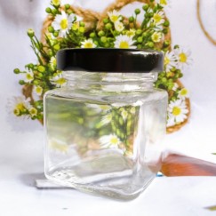 - Hũ thuỷ tinh trong suốt, nắp nhôm đen