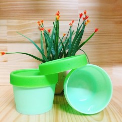 - Hũ kem đựng mỹ phẩm màu hồng, nắp cùng màu tông đậm.