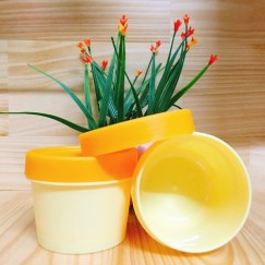 - Hũ kem đựng mỹ phẩm màu vàng, nắp cùng màu tông đậm.