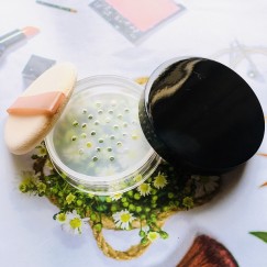 Vỏ hộp phấn nắp đen với thiết kế gọn gàng